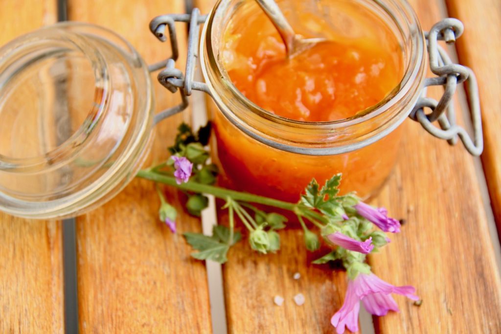 Kochen bei Sturm und Regenbogen hat dieses Kochereignis beflügelt, denn was uns in unserer Einkoch-Serie noch gefehlt hat, ist ein Chutney. Für die Marillenmarmelade mit Estragon haben wir bereits unsere Estragonstaude geplündert. Jetzt ist das Kraut schon wieder gefragt. Diesmal im Marillenchutney mit leichter Süße und angenehmer Schärfe von Koch Matthias Schicht vom Wirtshaus „Zum Weißen Rauchfangkehrer“ in Wien, der uns das Rezept geschickt hat.