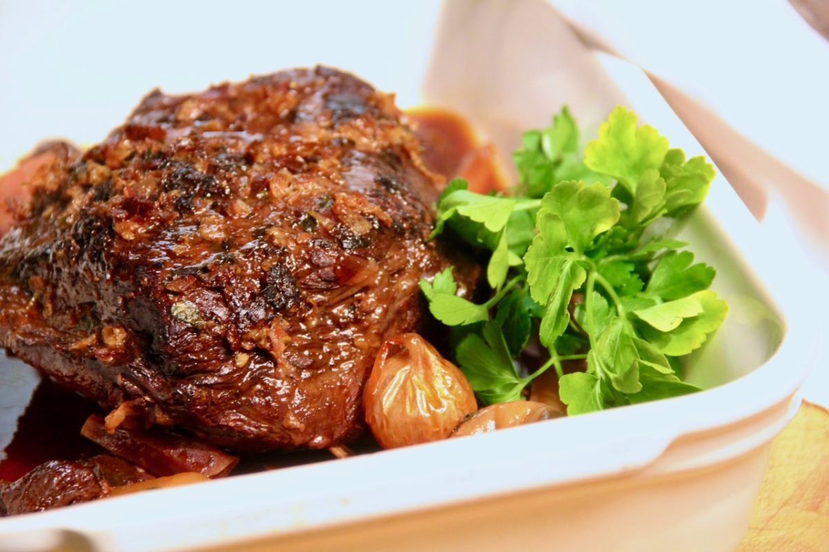 Die Fleischqualität ist bei einem Braten immer wichtig – aber bei einem Rindsbraten ist sie es ganz besonders, da er nicht viel Fett hat und trotzdem mürbe und saftig werden soll. Mit einem 21 Tage gereiften Hüferlbraten von unserem Festtagsbraten-Partner Radatz sollte die Übung aber gelingen – und das tat sie auch!