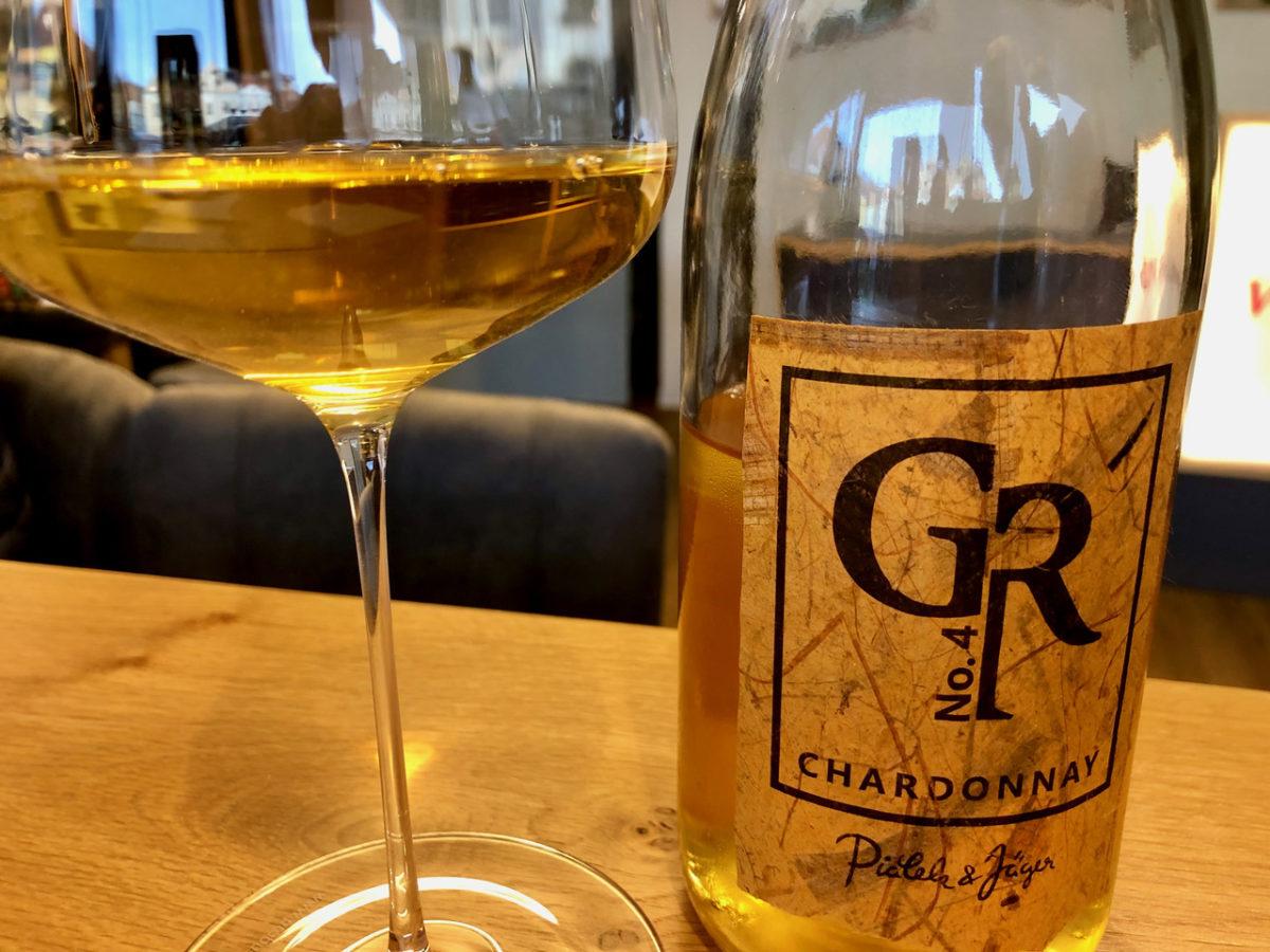…und kostet den Chardonnay Grand Reserva (GR4) Orange vom Jahrgang 2015. Dem sollte man etwas Luft in der Karaffe gönnen, wie einem Rotwein. Dann präsentiert er sich im Duft herrlich intensiv und voll mit einer Aromatik von Orangenzesten, getrockneten Marillen und etwas Blütenhonig, zart rauchiger Note und kräftiger Würze, wobei mit Luft noch reife Mangos hinzukommen. Am Gaumen eine schöne Kombination aus einem Hauch an Fruchtsüße und fein ziseliertem Gerbstoff, der im Glas immer geschmeidiger wird. Ein Wein, den man zum Essen trinken sollte, mit unglaublicher Präsenz am Gaumen und ewigem Nachklang. Trinkfreude mit Charakter.