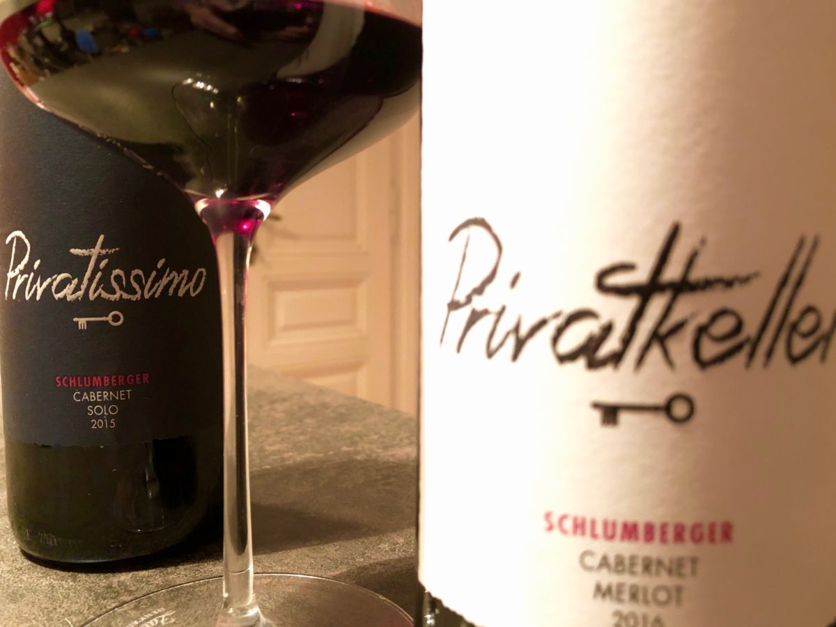 Die Rotweincuvée „Schlumberger Privatkeller“ aus Cabernet Sauvignon und Merlot wird nach wie vor produziert, doch jetzt hat man sich entschlossen, diesem Wein mit dem reinsortigen Cabernet Sauvignon „Privatissimo“ noch einen zweiten Wein zur Seite oder besser gesagt, sogar darüber zu stellen. Denn der Privatissimo ist sozusagen ein „Best-of-Wein“, der nur in besonderen Jahren und aus dem allerbesten Traubenmaterial gekeltert wird. Nach reichlich Reifezeit in den Barriquefässern wurde der erste Privatissimo vom Jahrgang 2015 auf den Markt gebracht – und er wird den hohen Erwartungen absolut gerecht.