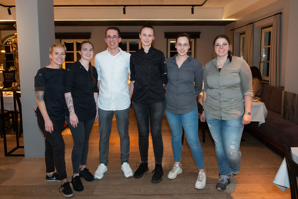 Gekommen waren: Julia Hofstätter vom Foggy Mix aus Waidhofen/Thaya, Kathrin Ölzant von der Kaskuchl der Käsemacherwelt in Heidenreichstein, Christina Steindl vom Hotel Elisabeth aus Kirchberg/Tirol und Janine Wieland von Hotel & Chalet Aurelio aus Lech am Arlberg. Emilia Orth-Blau von „Rosa & Marie Erlebniskulinarik“ aus Wien musste krankheitsbedingt ihr Kommen absagen, entsandte allerdings ihren kulinarischen Beitrag per Expressboten direkt in den Dorfwirt. Zudem bekam das Spitzenköchinnen-Team Verstärkung durch Victoria Kuben, die seit Kurzem an der Seite von Küchenchef Klaus Hölzl als Sous Chefin die kulinarische Vielfalt im Dorfwirt bereichert. Das ambitionierte 6-gängige Menü wurde vom Weingut Schmid aus Gobelsburg begleitet.