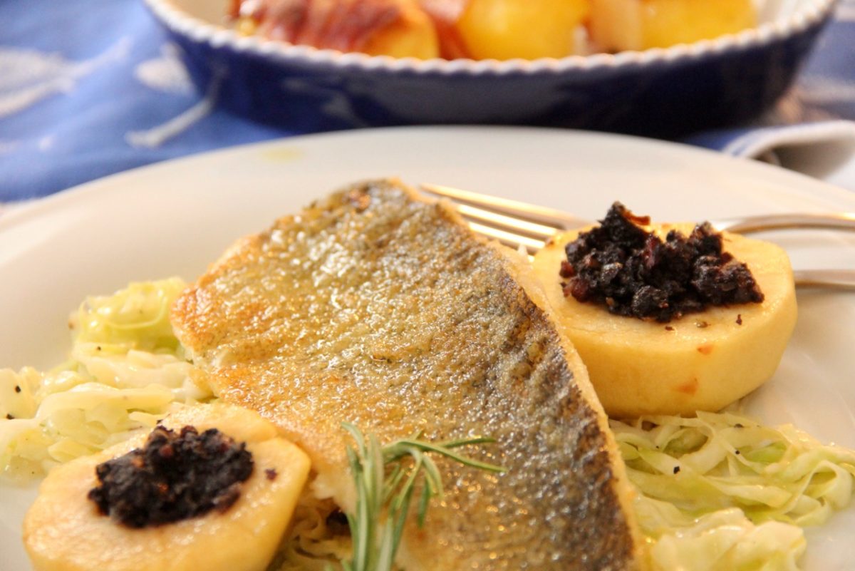 Zander auf Topaz Apfel mit Blunz´n , Spitzkraut und Speckerdäpfel
