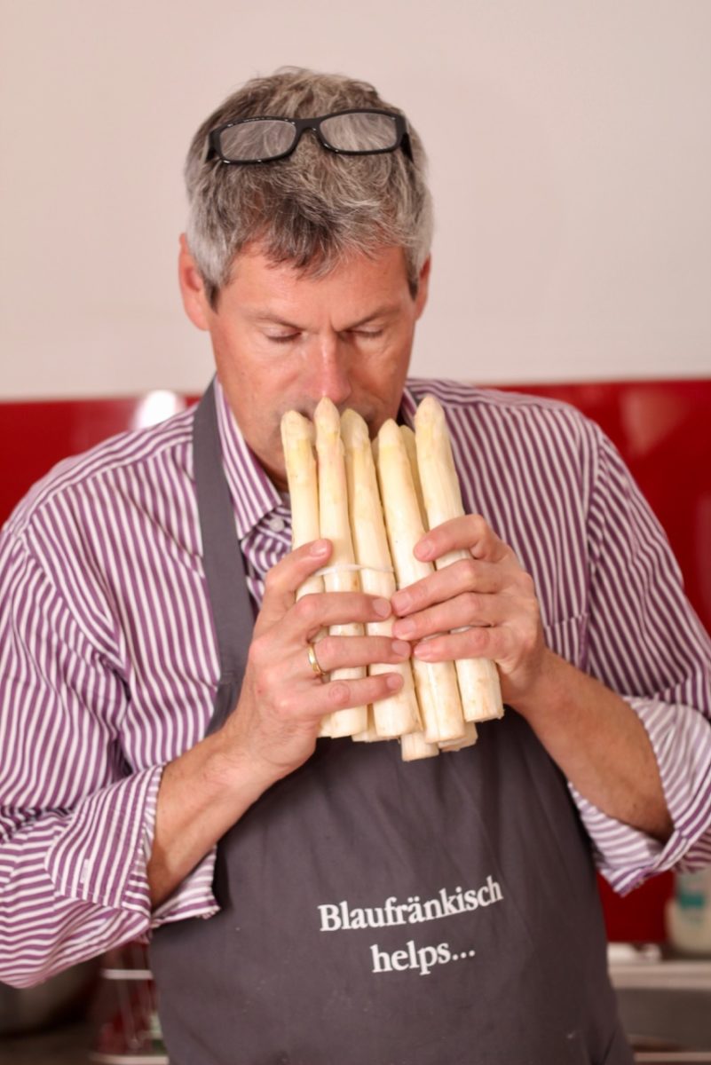 Kärtner Wein, der im Übrigen nicht zu verachten ist und unter anderem – so wie der Spargel – auch im Lavanttal gekeltert wird, hatten wir nicht bei der Hand. Aber bei der Suche nach einem kräftigen, abgerundeten Weißwein, der sich mit den kräftigen Aromen des Risotto und vor allem der im Butterschmalz gebackenen Panier quasi symbiotisch verbinden könnte, wurden wir in Langenlois fündig. Davis Weszeli ist ein symathischer Quereinsteiger, der vor einigen Jahren das Weingut Summerer übernommen hat und seither nicht nur mit den spektakulären Designs seiner Flaschen, sondern vor allem auch mit deren Inhalt Aufsehen erregt. Der Grüne Veltliner Schenkenbichl 2013 erwies sich als reifer, cremig-dichter Tropfen, der weder zurücksteckte, noch all zu forsch auftrat, sondern mit seiner geschmeidigen Textur, seiner reifen Säure und seinem ruhigen Naturell ein außerordentlich angenehmer Begleiter war, der mit seinen Anklängen von exotischen Früchten bis Biskuit noch zusätzliche geschmackliche Akzente setzte.