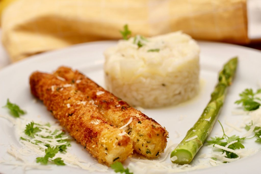 In den vergangenen Jahren hat der Spargel viele Regionen in Österreich erobert und sprießt unter anderem auch im Kärntner Lavanttal – genau da kommt der Spargel her, den Markus Eisner, Wirt und Küchenchef vom Wirtshaus Umadum in Unteraichwald nahe dem Faaker See derzeit verkocht. Uns hat er ein Rezept geschickt, das uns vorerst – wie so oft – ins Grübeln und dann ins Jubeln gebracht hat. Erfahren Sie hier, was „Panko-Bröseln“ sind und wie sie den Spargel sozusagen in Form einer „Sonntags-Panier“ zur Krönung des Risotto veredeln.