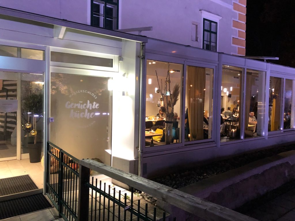 Für einen Abend (und einen Brunch) folgte der bekannte TV-Koch Oliver Hoffinger der Einladung, das Küchenteam der Gerüchteküche zu verstärken. Mit vereinten Kräften zauberte man ein feines Menü, gespickt mit Edelprodukten von der Gänseleber über schwarze Trüffeln bis zum Rehrücken. Die passenden Weine zur herbstlichen Menüfolge präsentierte Johann Gisperg Junior, dessen Weingut quasi um die Ecke in Teesdorf liegt. Und er bewies, dass in der Region und im Betrieb die Burgundersorten besonders spannende Weine bringen. Nach einer lässigen Einleitung mit dem speziell auf die Küche der Saison abgestimmten, roten Jungwein „GansWild“ folgten unter anderem die mineralische Burgundercuvée „BEX“ aus Chardonnay, Weiß- und Grauburgunder sowie die Reserven von Pinot Noir und St. Laurent, die mit ihrer Würze und feinen Struktur zum Rehrücken beste Figur machten. Den Abschluss des gelungenen Genuss-Abends machten die perfekt gemixten Cocktails des Hauses – allein schon ein Grund, den Wassergraben, der das Schloss umgibt, einmal zu überqueren!