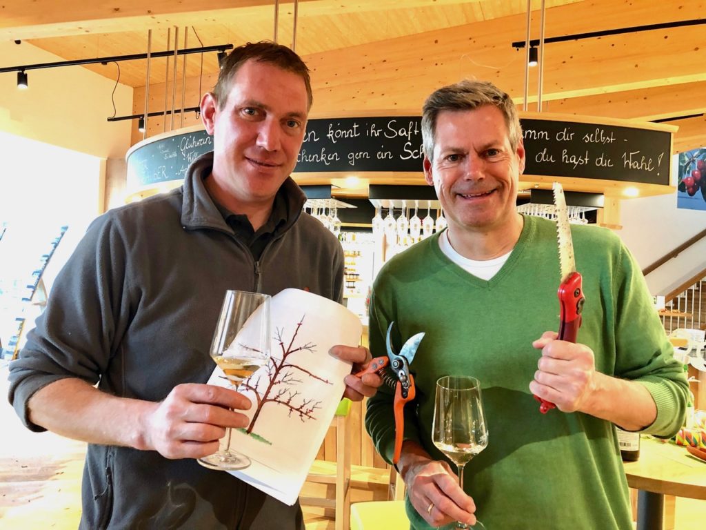Herzlich ist der Empfang im neuen großen Shop im Gutshof. Fast schon wie ein Supermarkt der Genüsse aus der Region, so präsentiert er sich. Nach einer Einführung in die Theorie geht es hinaus zu den Bäumen und den Reben. Dort legt der Hausherr selbst Hand an und erklärt derweilen unterhaltsam die vielen Facetten des Schnittes. Danach gibt es eine wunderbare Brettljause mit Wein- und Fruchtsaftverkostung, noch ein bisschen Einkaufen und nach Hause, um das Neugelernte sofort umzusetzen.