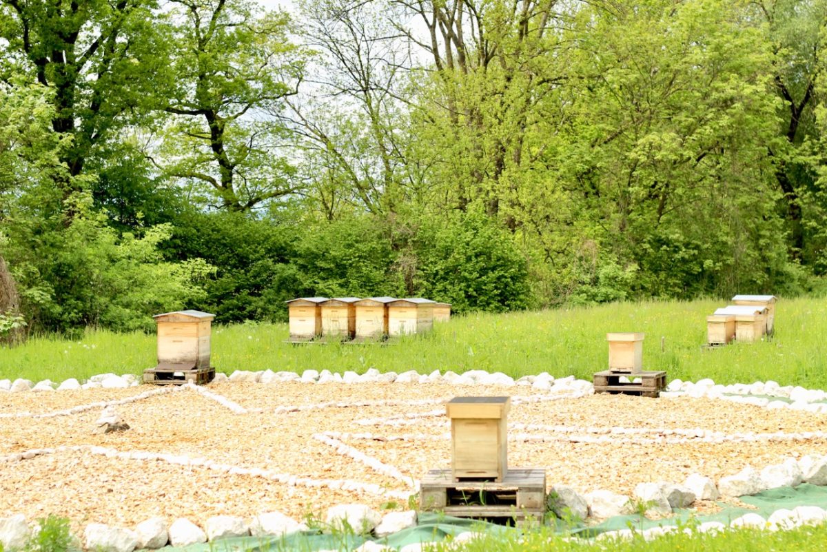 Doch kann man im Gut Wildshut nicht nur gut Essen und Trinken – übrigens bei bester Betreuung durch das von Bier-Sommelière Anna Grünwald geleitete Service – sondern auch Führungen und Besichtigungen machen. Da lernt man dann, dass hier eigentlich ein Kraftplatz ist, was sich auch in der Architektur und Gestaltung der gesamten Anlage widerspiegelt, dass hinter dem Haus rund 600.000 Schwarze Bienen summen, die schon bald auch Honig liefern werden und dass auch der nächste Schritt zur bierigen Selbstversorgung durch die Anlage eines Hopfengartens schon getan ist.