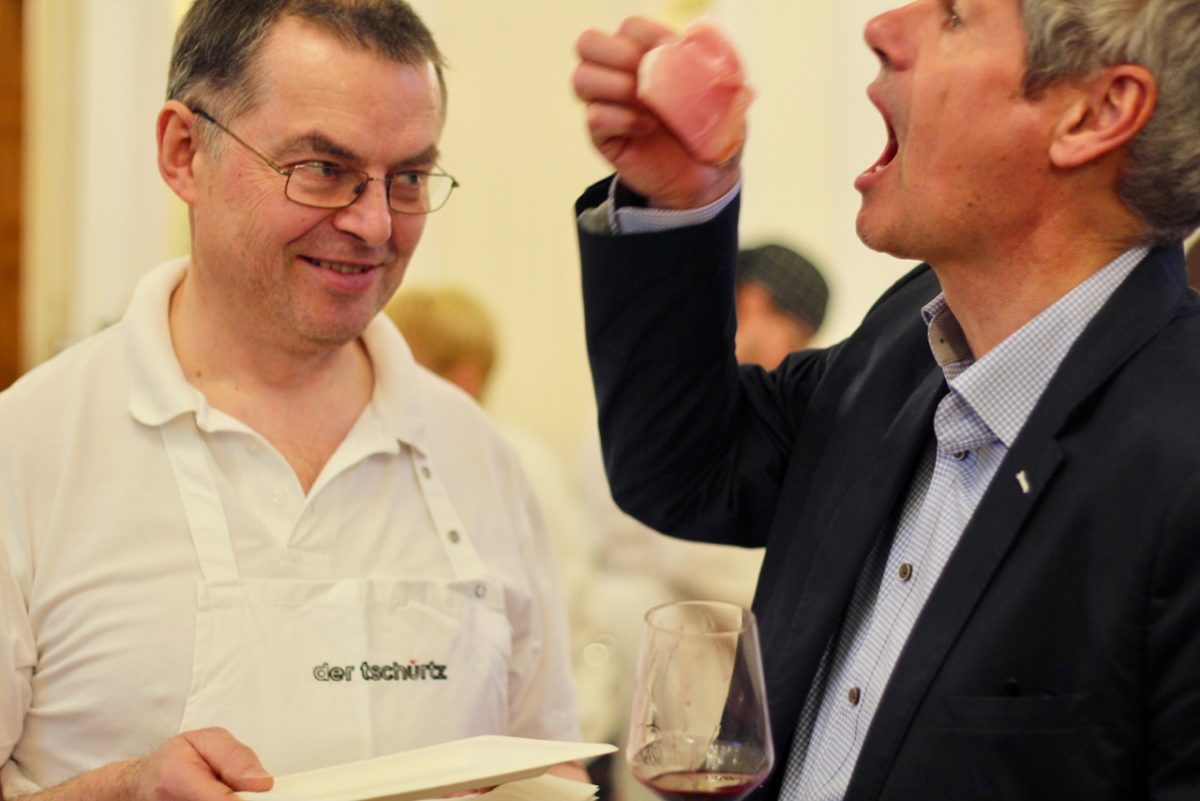 Schinken-Guru Otmar Tschürtz, hier mit Wirtsausführer-Herausgeber Klaus Egle, sorgte für die kulinarische Begleitung.