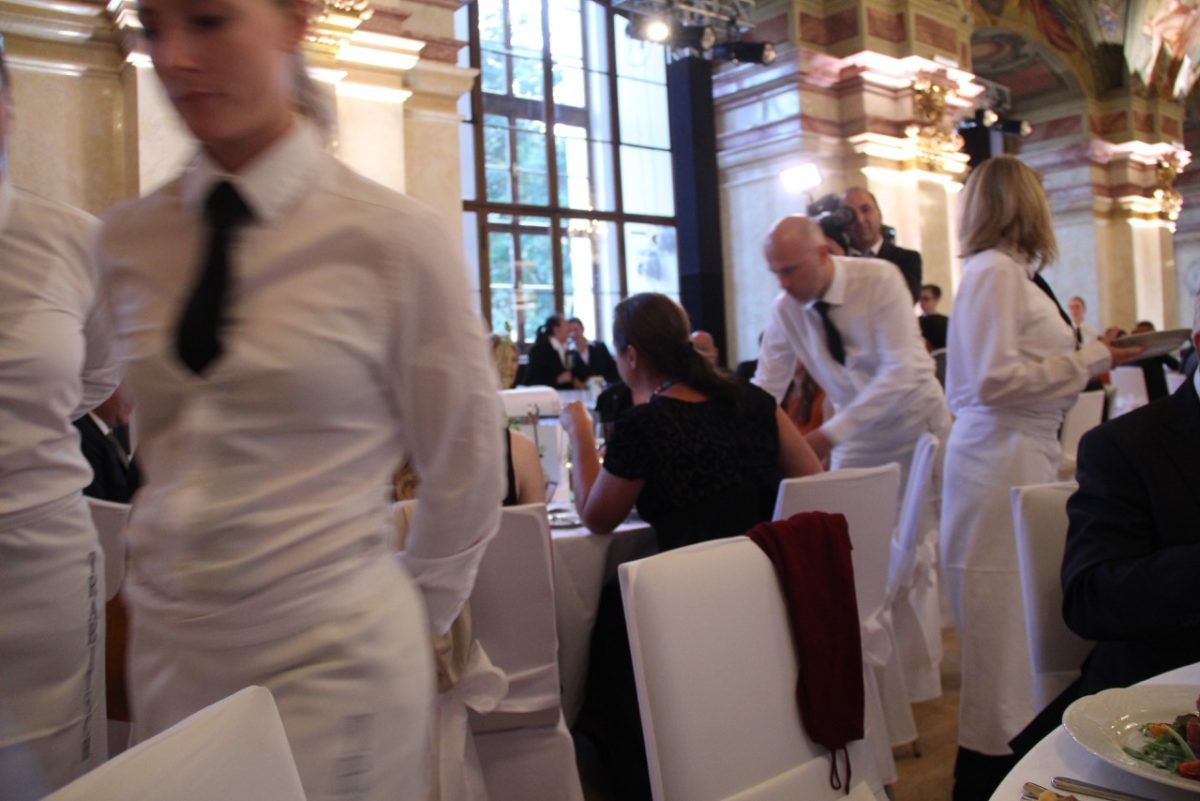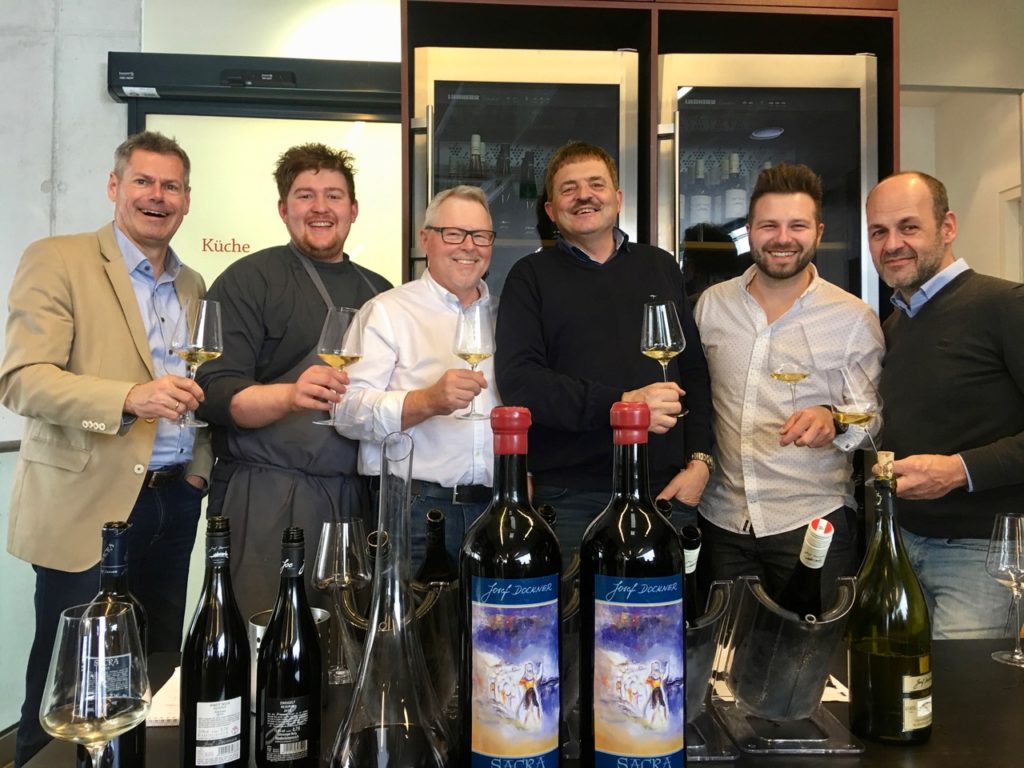 Der Tisch war debei reichlich gedeckt – von kleinen, feinen Happen zum Winzersekt über Karpfenfilet mit Paradeiskraut, gebratenes Hirschkalb oder Altwiener Backfleisch bis zum klassischen Kaiserschmarrn oder haugemachtem Bratapfelsorbet. Dazu griff Sepp Dockner tief in seine Kellerbestände und kredenzte neben einem prickelnden Auftakt mit Brut Rosé 2014 und Brut Blanc de Blanc 2013 einen Querschnitt durch das gesamte Sortiment. Gekrönt wurde dieser Streifzug mit gereiften Weinen wie dem Grünen Veltliner Reserve „Privatfüllung Gudrun“ 2007 oder dem Top-Rotwein „Sacra 2007“ aus Großflaschen.