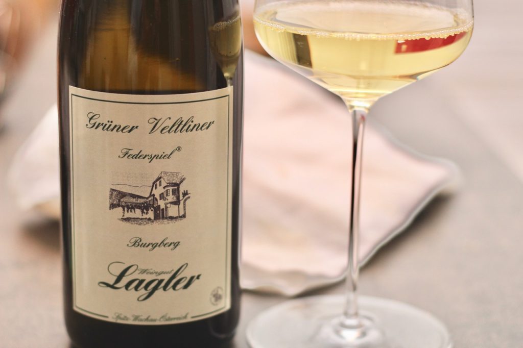 Zu einem herzhaften Gericht wie es „Tiroler Schlipfkrapfen nach Opas Art“ sind braucht es etwas Leichtfüßiges, dachte ich mir. Jung, mit nicht zuviel Alkohol aber einer erfrischenden Säure als Kontrapunkt zu Butter, Käse & Co. Da war der Grüne Veltliner Burgberg Federspiel 2016 vom Weingut Karl Lagler in Spitz genau der richtige Kandidat. Freilich erwies sich dieser Wein nicht etwa als junger, rescher Durstlöscher, sondern zeigte eine fein gewobene Mineralik und eine perfekt gereifte, geradezu milde Säure, was für die Ausgewogenheit dieses Jahrgangs spricht. Doch nicht nur in sich weist dieser Wein eine wohl abgestimmte Harmonie auf – auch mit den Schlipfkrafpen ergab sich eine friedliche, harmonische und absolut genussvolle Koexistenz.