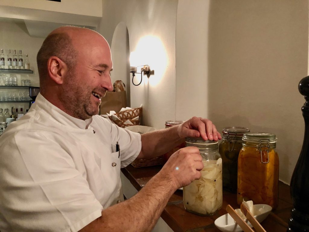 Erklärt der Küchenchef seine Gerichte, so wird schnell klar, dass er seine regionalen Lieferanten alle persönlich kennt und dass hier vom Teig für den Feuerfleck über die eingelegte Feldgurke bis hin zum geräucherten Hirschcarpaccio – der Hirsch kommt aus der Lobau – was immer möglich ist, eigenhändig fabriziert wird. Unsere Anregung, das noch stärker auf der Speisekarte auszuloben, überrascht den überragenden Küchenhandwerker, der seine Karriere einst im Schlachthof gestartet hat, was in Sachen Glaubwürdigkeit kaum zu toppen ist, fast ein bißchen, denn er meint: „Das ist doch selbstverständlich!“ Auf die Frage, wie er seinen Küchenstil im neuen Domizil beschreiben würde, kommt kurz und knapp: „Sinnvoll kochen!“ Und er erklärt, was das für ihn bedeutet: „So wenig wie möglich importieren. Natürlich liebe ich Thunfisch – aber der Preis, den wir heute dafür bezahlen, ist zu hoch. Nicht monetär, sondern im Sinne der Auswirkungen auf das gesamte Öko-System!“ Ihm geht es um sinnvolles kochen und wir freuen uns, dass wir hier ab sofort sinnvoll genießen dürfen.