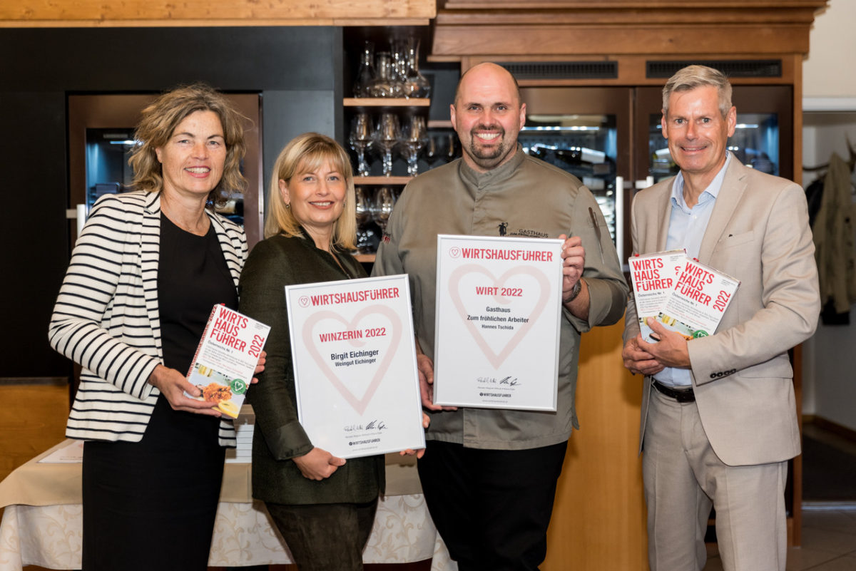 Gleichzeitig wurden die begehrten Auszeichnungen „Wirtshausführer Wirt 2022″, „Wirtshausführer Winzerin 2022“, „Wirtshausführer Weinmensch 2022″ und „Wirtshausführer Weinwirte 2022“ verliehen. Der Titel „Wirtshausführer Aufsteiger 2022“, unterstützt von METRO, wird einzeln in den Bundesländern vergeben. Über 60 Gäste aus Wirtschaft, Politik, Tourismus und Gastronomie feierten mit. „Ein Jahr der Recherche in Pandemiezeiten zeigt klar, dass das Wirtshaus der Zukunft anders aussehen wird, wie wir es bisher gewohnt sind“, sagen die Wirtshausführer-Herausgeber Renate Wagner-Wittula, Elisabeth Egle und Klaus Egle. Sei es der ausgelagerte Verkaufsraum in Form eines Gulaschautomaten in der Stadt oder das „Dorfwirtshaus“, wenn Bürger selbst ihr Wirtshaus gründen, weil es im Ort keines mehr gibt. Die neuen Services wie Take-Away, entstanden in der Pandemiezeit, sind ein Indikator für flexibles und innovatives Unternehmertum.