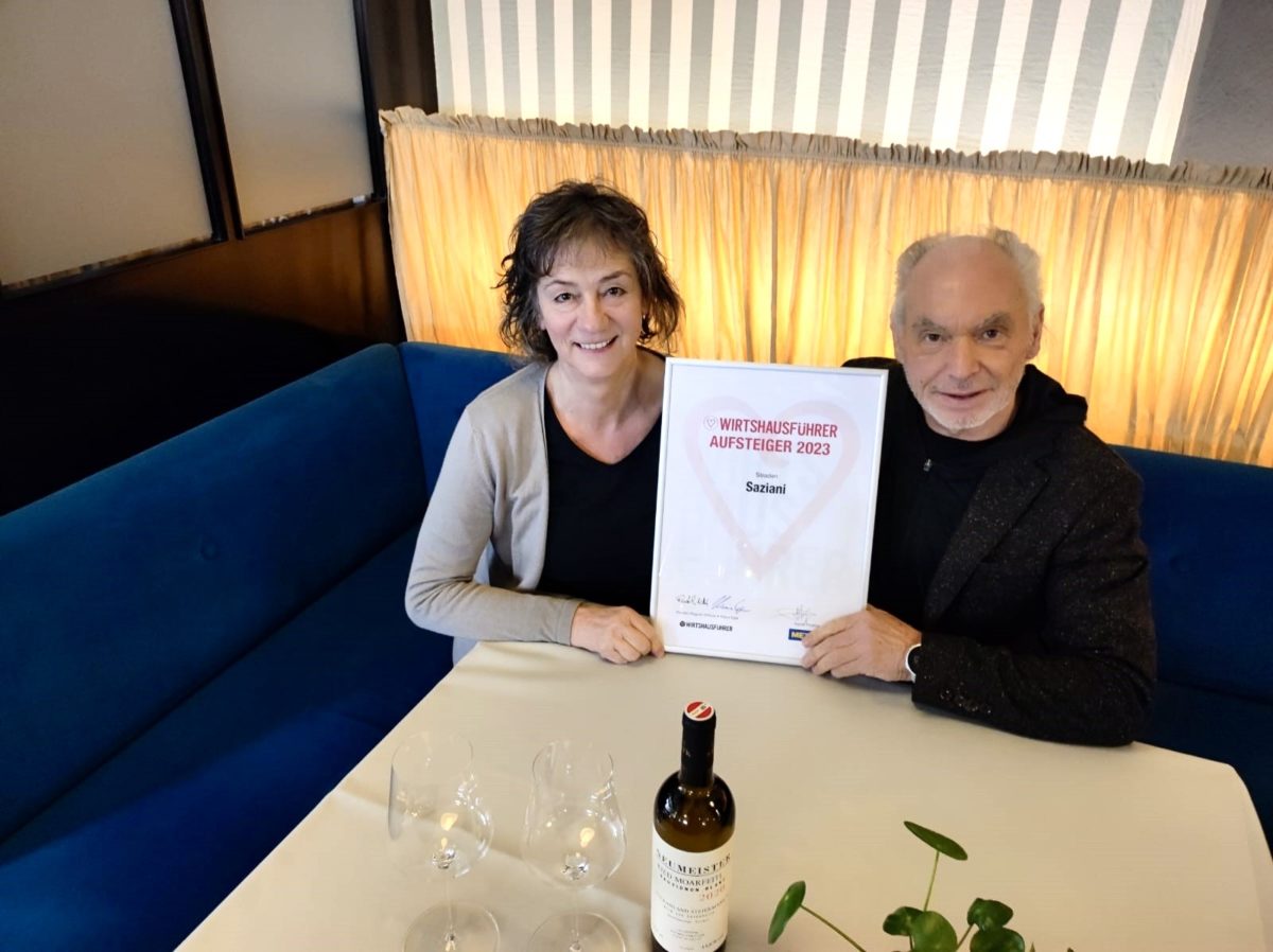 „Nachhaltigkeit kann man sich als Betrieb nicht aufkleben wie ein Etikett, das muss Teil der Wertehaltung eines Menschen sein“. So ein Satz lässt einen neugierig werden. Wer sind diese Menschen, die das sagen? Es sind Anna und Albert Neumeister. Im Jahr 1987 haben sie die „Saziani Stub’n“, angeschlossen an das Weingut Neumeister, eröffnet. Angefangen hat alles mit einer hochwertigen Buschenschank, später wurde daraus ein Spitzenrestaurant. Ihre Vision, Genuss und Nachhaltigkeit in Kombination mit legerem Wohlfühlambiente in Einklang zu bringen, ist ganz sicher Teil ihres Erfolgsrezeptes. eit Anbeginn sind in der Saziani Stub‘n Köche mit großen Ambitionen am Werk, die von der Familie Neumeister stets gefördert werden. Namen wie Gerhard Fuchs, Jürgen Kleinhappl und Harald Ikra entwickelten sich bei „Saziani Neumeister“ zu den besten Köchen des Landes. Schon immer war die Familie Neumeister dafür bekannt, dass sie sich ständig neu erfindet, so wie jetzt auch. Der Teamgedanke wird noch stärker betont. Mit Christof Mandl und Ruth Heusch wurden neue Verantwortliche für Küche und Service gefunden – Anna und Albert Neumeister planen mit ihnen zusammen einen Weg in die kulinarische Zukunft. Wieder einmal ein Neubeginn, die „Saziani Stub’n“ ist daher ein würdiger „Wirtshausführer Aufsteiger 2023“.